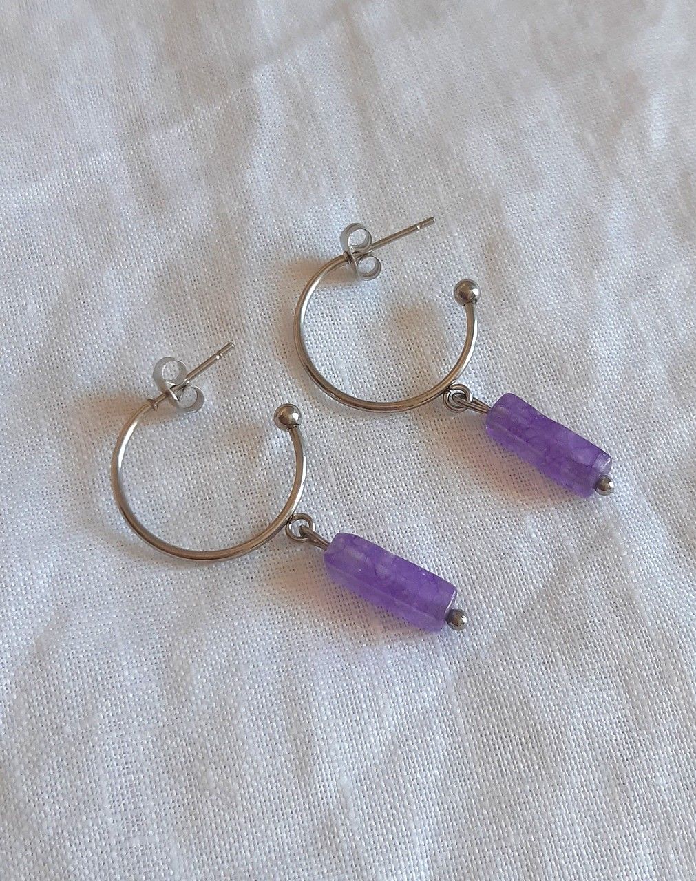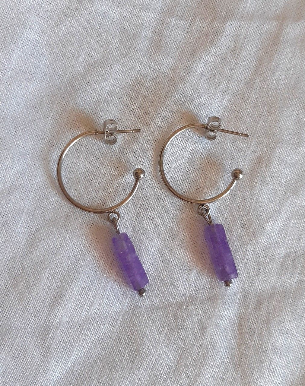 L'améthyste, avec ses nuances violettes envoûtantes, apporte une touche de sérénité et d'élégance à toutes vos tenues.