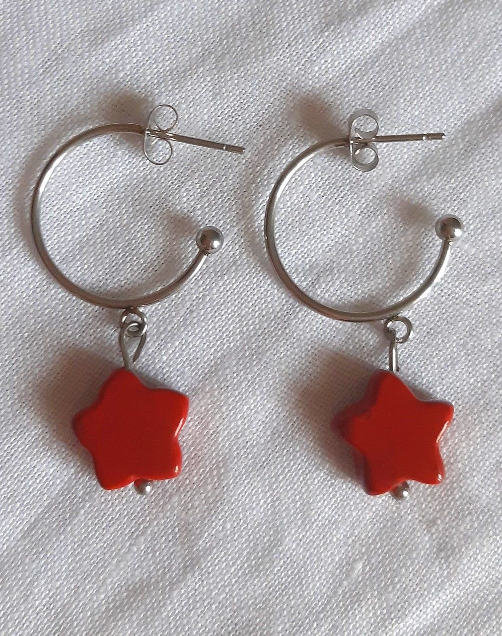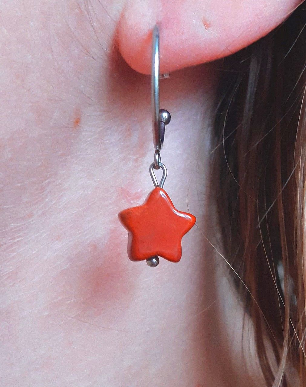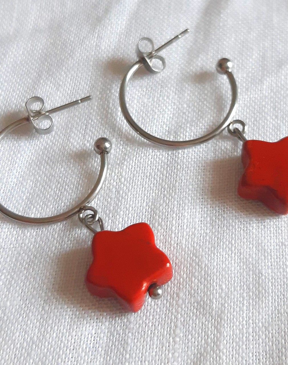 • Boucles Grenat " CREATION " • Acier inoxydable doré et pierre naturelle (granit)