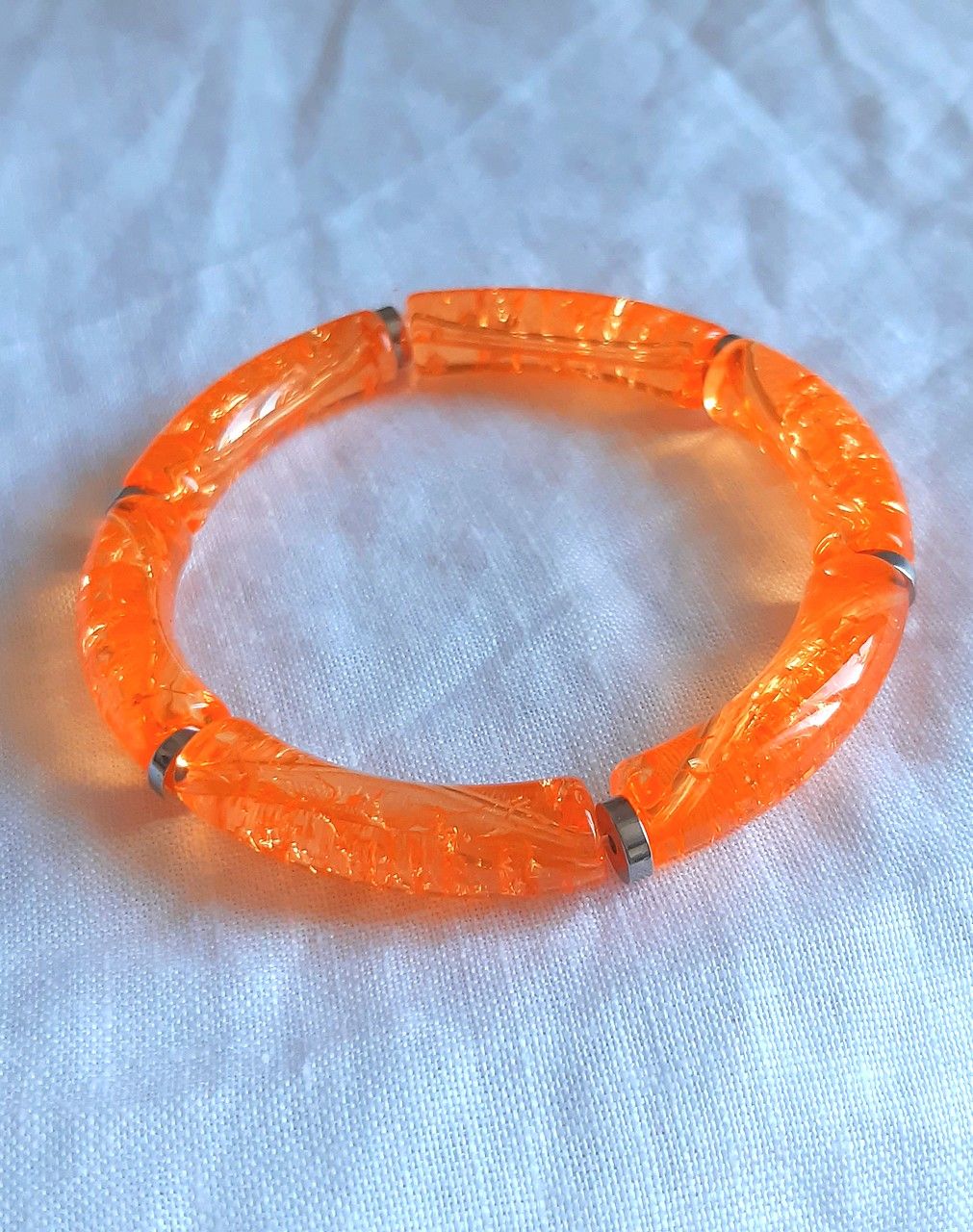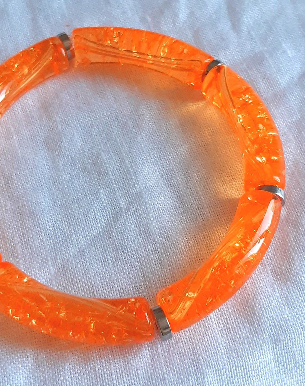 • Style : Un montage alternant perles orange en acrylique et perles en acier argenté, pour un look résolument dynamique.