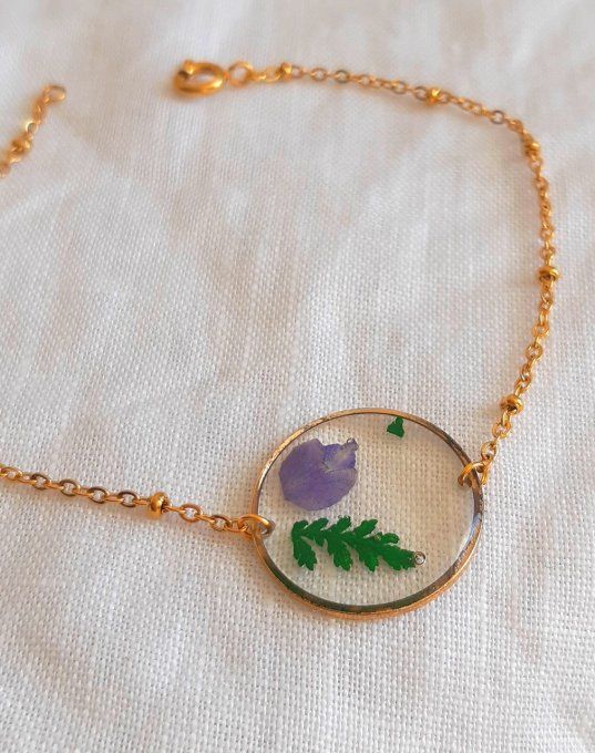 • Composé d'un pendentif en laiton avec résine et fleurs séchées