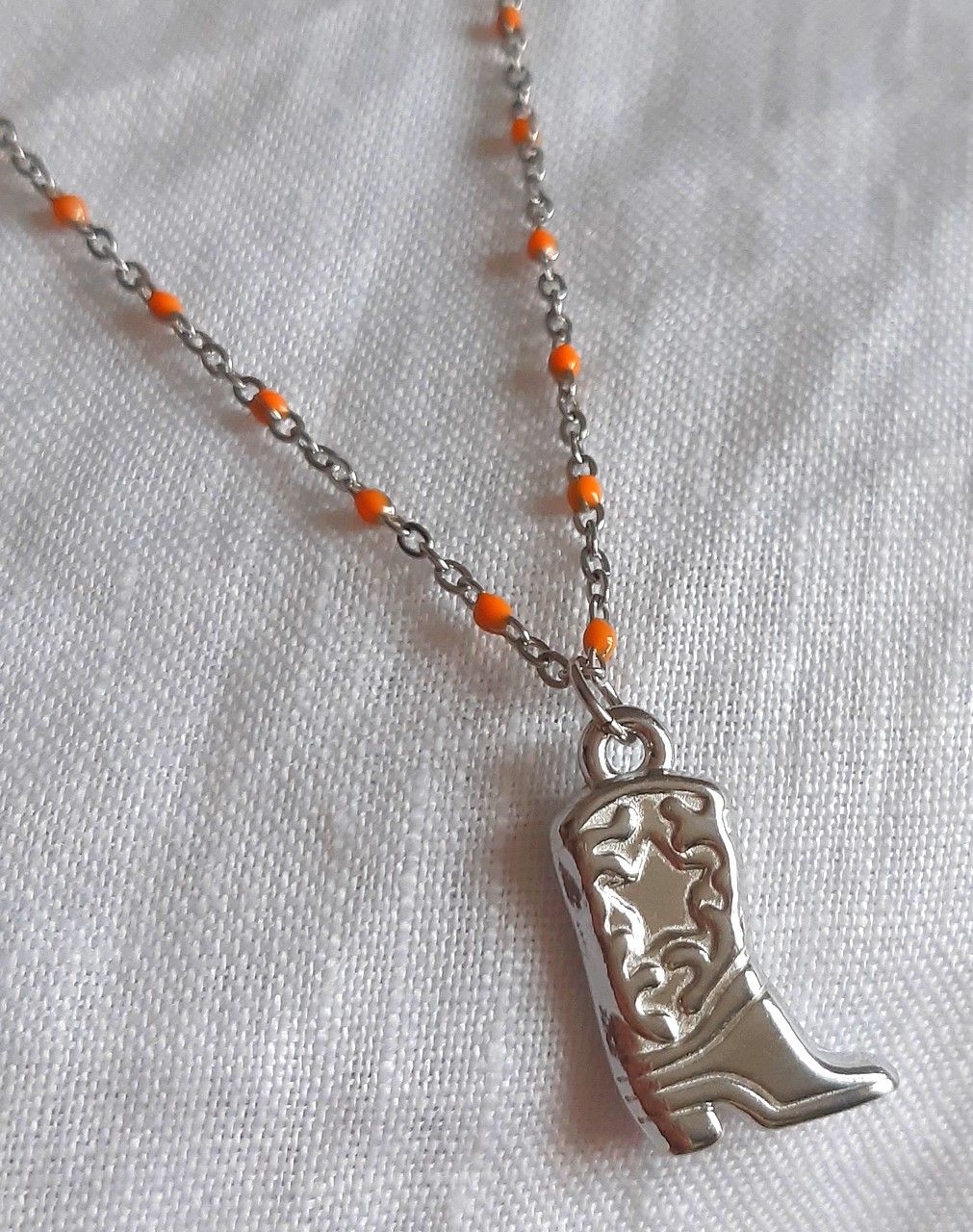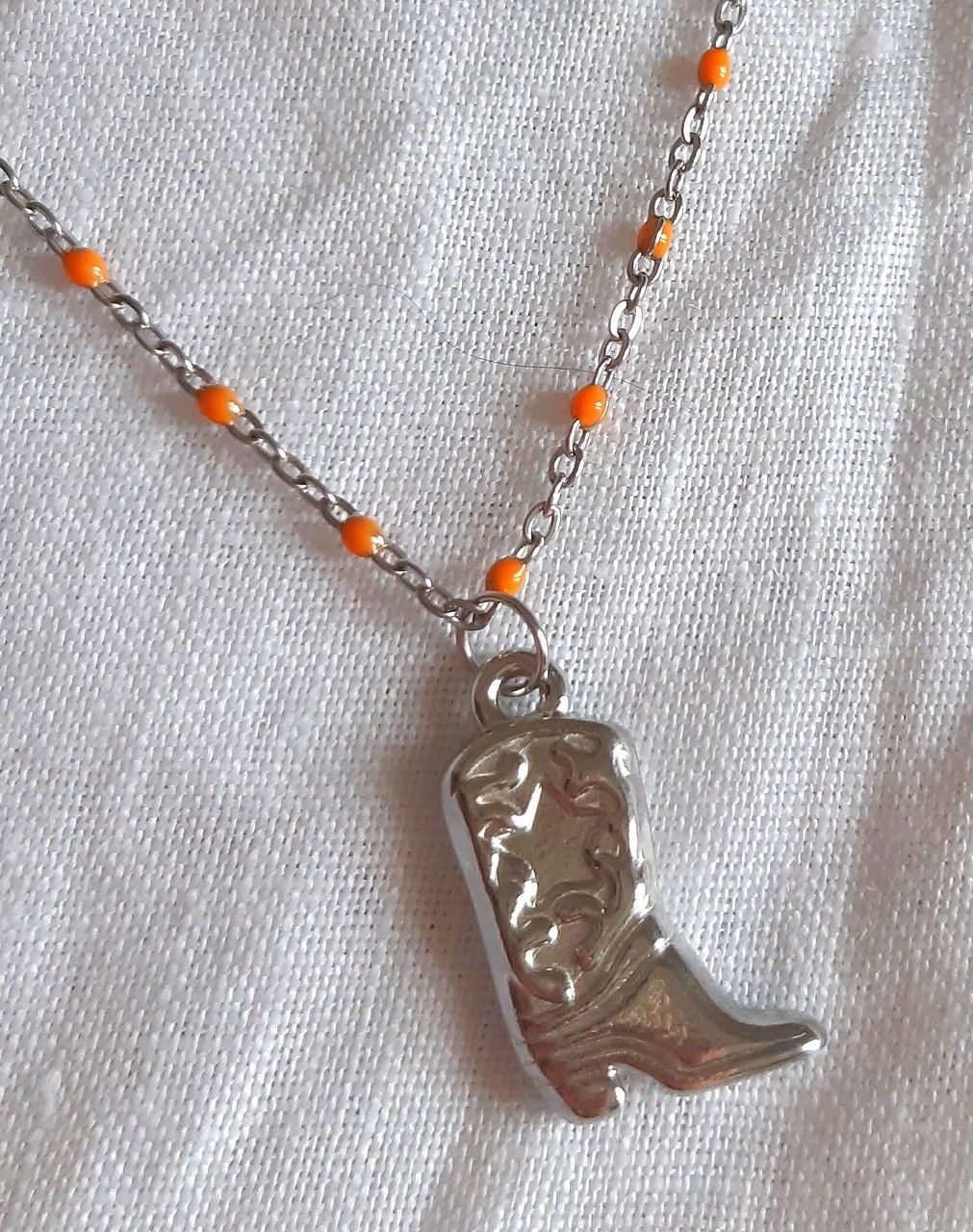 • Composé d'un pendentif en acier argenté en forme de botte de cow boy (environ 2cm)