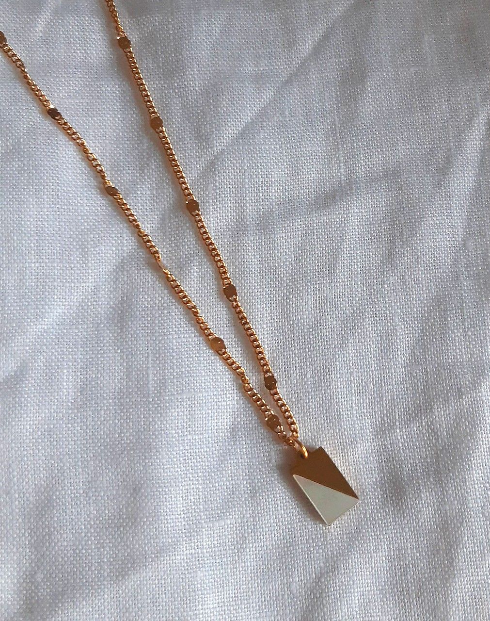 • Détail Précieux : Pendentif raffiné en acier doré et nacre (1 cm / 0,5 cm).