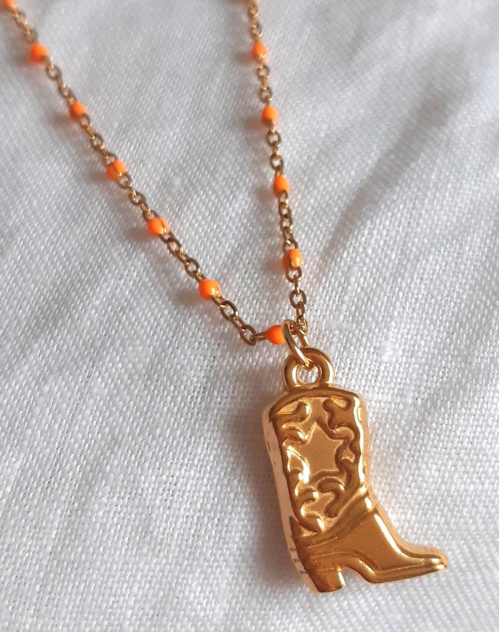 • Composé d'un pendentif en acier doré en forme de botte de cow boy (environ 2cm)