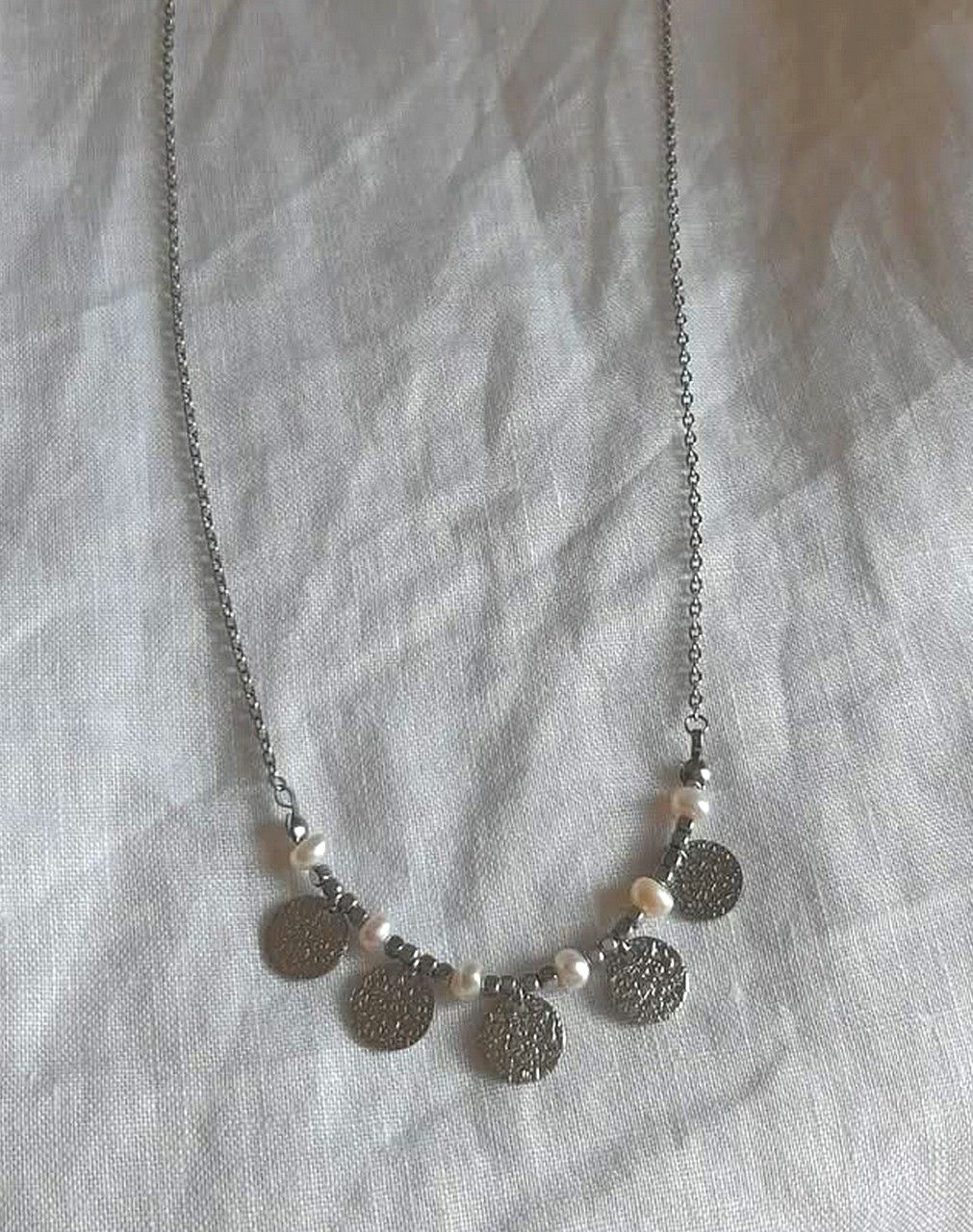 • Acier inoxydable argenté, perles d'eau douce et perles en hématite