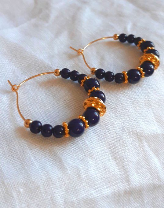 • Créoles origines Etats-Unis, perles en résine et perles dorées origines Europe