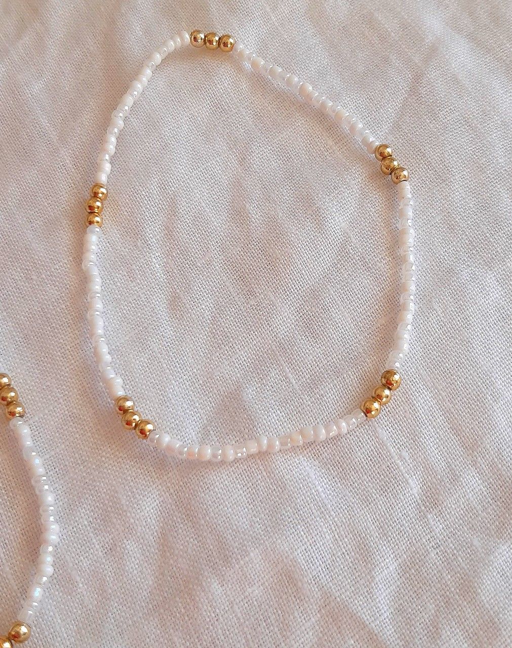 • Perles blanches et perles dorées en métal